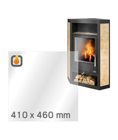 Žáruvzdorné sklo je ploché, čiré. Propouští veškeré teplo z topeniště do vytápěného prostoru, zůstává rozměrově stabilní i po intenzivním zahřátí a je vysoce odolné vůči tepelným šokům. Maximální teplotní odolnost je 800 °C. Jedná se o špičkovou kvalitu – prémiové žáruvzdorné ROBAX® sklo od SCHOTT, předního německého výrobce. Sklo má tloušťku 4 mm a přesný rozměr 410 x 460 mm, což zajišťuje perfektní kompatibilitu s modelem ABX LAHTI II. Je plně čiré, bez potisku, bez obvodového černého rámečku a oboustranně totožné, takže instalace je snadná a bez rizika nesprávného umístění.