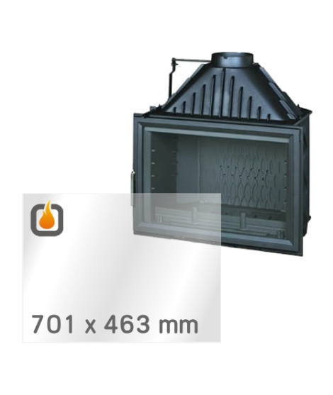 Žáruvzdorné sklo je ploché, čiré. Propouští veškeré teplo z topeniště do vytápěného prostoru, zůstává rozměrově stabilní i po intenzivním zahřátí a je vysoce odolné vůči tepelným šokům. Maximální teplotní odolnost je 800 °C. Jedná se o špičkovou kvalitu – prémiové žáruvzdorné ROBAX® sklo od SCHOTT, předního německého výrobce. Sklo má tloušťku 4 mm a přesný rozměr 701 x 463 mm, což zajišťuje perfektní kompatibilitu s modelem INVICTA FOYER 800 GRANDE VISION. Je plně čiré, bez potisku, bez obvodového černého rámečku a oboustranně totožné, takže instalace je snadná a bez rizika nesprávného umístění.