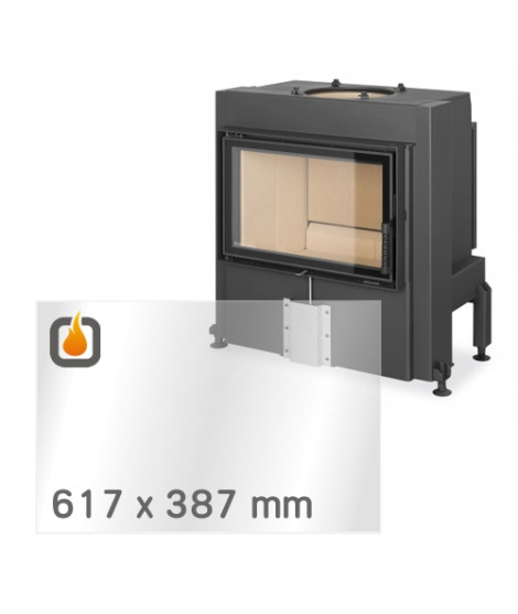 Žáruvzdorné sklo je ploché, čiré. Propouští veškeré teplo z topeniště do vytápěného prostoru, zůstává rozměrově stabilní i po intenzivním zahřátí a je vysoce odolné vůči tepelným šokům. Maximální teplotní odolnost je 800 °C. Jedná se o špičkovou kvalitu – prémiové žáruvzdorné ROBAX® sklo od SCHOTT, předního německého výrobce. Sklo má tloušťku 4 mm a přesný rozměr 617 x 387 mm, což zajišťuje perfektní kompatibilitu s modelem ROMOTOP DYNAMIC B3G 66.44.01 vnější (externí) sklo. Je plně čiré, bez potisku, bez obvodového černého rámečku a oboustranně totožné, takže instalace je snadná a bez rizika nesprávného umístění.