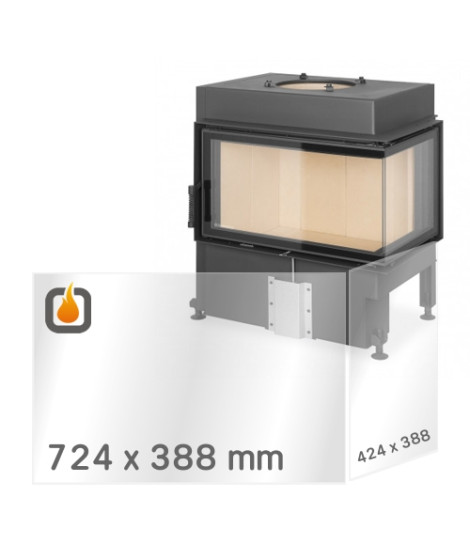 Náhradní žáruvzdorné sklo pro krbovou vložku ROMOTOP DYNAMIC R/L 3G S 72.44.42.21, vyrobené z kvalitního žáruvzdorného skla tl. 4 mm (SCHOTT ROBAX®), které odolá vysokým teplotám až do 800 °C.