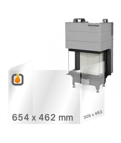 Náhradní žáruvzdorné sklo pro krbovou vložku ROMOTOP HEAT C 3G L 65.52.31.24, vyrobené z kvalitního žáruvzdorného skla tl. 4 mm (SCHOTT ROBAX®), které odolá vysokým teplotám až do 800 °C.