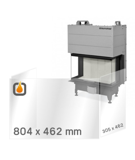 Náhradní žáruvzdorné sklo pro krbovou vložku ROMOTOP HEAT C 3G L 80.52.31.24, vyrobené z kvalitního žáruvzdorného skla tl. 4 mm (SCHOTT ROBAX®), které odolá vysokým teplotám až do 800 °C.