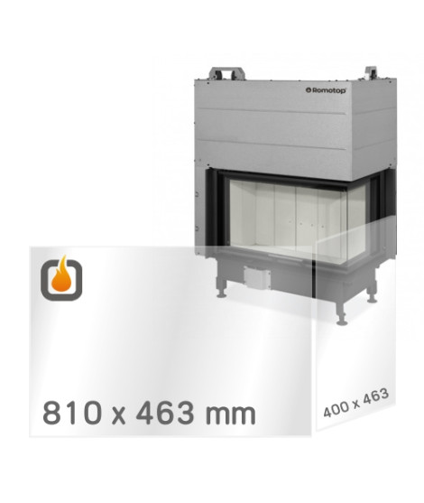 Náhradní žáruvzdorné sklo pro krbovou vložku ROMOTOP HEAT R/L 3G L 81.51.40.24, vyrobené z kvalitního žáruvzdorného skla tl. 4 mm (SCHOTT ROBAX®), které odolá vysokým teplotám až do 800 °C.