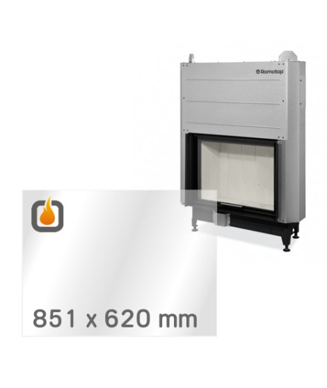 Žáruvzdorné sklo je ploché, čiré. Propouští veškeré teplo z topeniště do vytápěného prostoru, zůstává rozměrově stabilní i po intenzivním zahřátí a je vysoce odolné vůči tepelným šokům. Maximální teplotní odolnost je 800 °C. Jedná se o špičkovou kvalitu – prémiové žáruvzdorné ROBAX® sklo od SCHOTT, předního německého výrobce. Sklo má tloušťku 4 mm a přesný rozměr 851 x 620 mm, což zajišťuje perfektní kompatibilitu s modelem ROMOTOP HEAT 3G L 88.66.04. Je plně čiré, bez potisku, bez obvodového černého rámečku a oboustranně totožné, takže instalace je snadná a bez rizika nesprávného umístění.