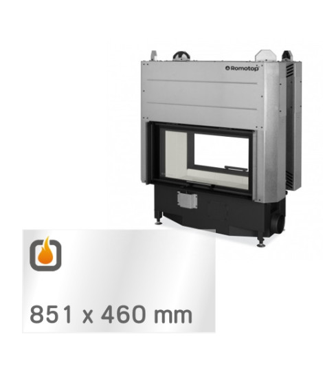 Žáruvzdorné sklo je ploché, čiré. Propouští veškeré teplo z topeniště do vytápěného prostoru, zůstává rozměrově stabilní i po intenzivním zahřátí a je vysoce odolné vůči tepelným šokům. Maximální teplotní odolnost je 800 °C. Jedná se o špičkovou kvalitu – prémiové žáruvzdorné ROBAX® sklo od SCHOTT, předního německého výrobce. Sklo má tloušťku 4 mm a přesný rozměr 851 x 460 mm, což zajišťuje perfektní kompatibilitu s modelem ROMOTOP HEAT T 3G L 88.50.04. Je plně čiré, bez potisku, bez obvodového černého rámečku a oboustranně totožné, takže instalace je snadná a bez rizika nesprávného umístění.