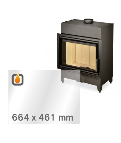 Žáruvzdorné sklo je ploché, čiré. Propouští veškeré teplo z topeniště do vytápěného prostoru, zůstává rozměrově stabilní i po intenzivním zahřátí a je vysoce odolné vůči tepelným šokům. Maximální teplotní odolnost je 800 °C. Jedná se o špičkovou kvalitu – prémiové žáruvzdorné ROBAX® sklo od SCHOTT, předního německého výrobce. Sklo má tloušťku 4 mm a přesný rozměr 664 x 461 mm, což zajišťuje perfektní kompatibilitu s modelem ROMOTOP HEAT W 2g 70.50.01. Je plně čiré, bez potisku, bez obvodového černého rámečku a oboustranně totožné, takže instalace je snadná a bez rizika nesprávného umístění.