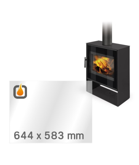 Náhradní žáruvzdorné sklo pro kamna ROMOTOP ALEDO 03, vyrobené z kvalitního žáruvzdorného skla (SCHOTT ROBAX®), které odolá vysokým teplotám až do 800 °C. Sklo má rozměry 644 x 583 mm a tloušťku 4 mm, je oboustranně identické, čiré a bez černého okraje. Ideální pro bezpečnou a estetickou výměnu skla u vašeho krbu.